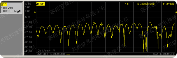S11是電回損,定義為射(shè)頻電信(xìn)號從(cóng)調製器RF端口(kǒu)反射會信(xìn)號(hào)源的比例(dB表示)。S21定(dìng)義為注入調(diào)製器射頻端口的電信號-3dB高頻截至帶寬。調製器的(de)RF射頻端(duān)的高頻效率通常由電回損和電光帶寬決(jué)定(dìng),用高速(sù)儀器比如光電探測器和(hé)矢量網絡分析(xī)儀(yí)可測量出這些參數。強度調製器需要設置在正確的(de)直流偏壓點,並且輸入(rù)射(shè)頻弱信號(S11一般0dBm數(shù)量級(jí),S21一般-15dBm數量級),S11需要(yào)記錄它在整個頻率段的最大數值(zhí),S21測量(liàng)時網絡分析儀和高速光探測器需要被校準和去嵌,以確保測量出的電光(guāng)帶寬僅僅是調製器本身(shēn)的。