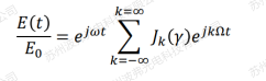 貝塞爾函數模擬計算如下圖所示,當調製深度(modulation index)γ=2.4的(de)時候,載(zǎi)波(紅線)強度(dù)為零,調(diào)製深度定義為: