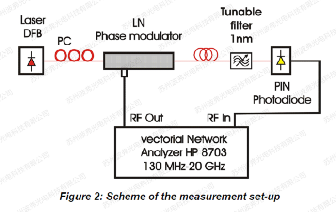 現在,如(rú)果(guǒ)用退火質子交(jiāo)換技(jì)術(shù)APE來製作的電光(guāng)調製器,就不能(néng)直接實(shí)現上麵鈦擴散調製器帶寬的測量方法。最簡單的解決方案是在光纖馬赫-曾德M-Z幹涉儀的一個臂上加入相位調製器。然而,這種幹涉儀的(de)熱不穩定性很難控製。因此,頻率響(xiǎng)應(yīng)會由於這些不穩定(dìng)性而產生畸變。