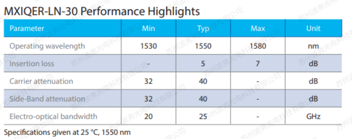 iXblue的MXIQER-LN-30是一(yī)款高帶寬,低插損,高抑製比的雙平行M-Z調製器,iXblue 專利技術“Magic Junction” (patent n° US2008193077)保證高達30dB以上的載波和邊帶(dài)抑製比。