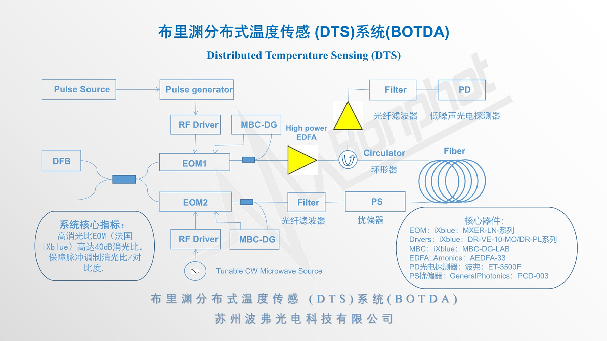 布裏淵(Brillouin)傳感器是一種光纖傳感技術,在分布(bù)式溫度和應變傳感中具有越來越重要的地位(wèi),同時,這種技術在各種工業溫度測量,結構壽(shòu)命監測和管(guǎn)道監(jiān)控等領域的廣泛應用(yòng),對布(bù)裏淵時域分(fèn)析(BOTDA)提(tí)出(chū)了(le)越來越高的性能要求。