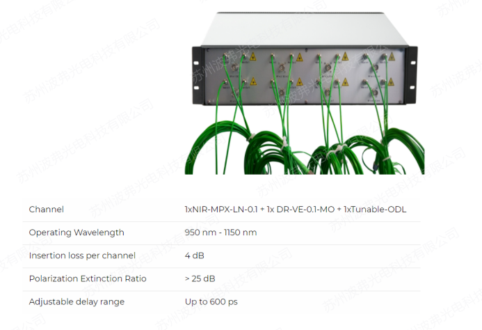 除了調製器(qì)和驅動等元器(qì)件,iXblue Photonics的產(chǎn)品線對於相幹合成技術還有ModBox-CBC-1064nm。這種優化的一體式解決方案是一種可靠的多光束相幹合成多通道相位調製解決(jué)方案。ModBox的工作波長為1064nm,集成了2到8個具有相位和延遲調諧能力的獨立通道。每個信道允許調整延時和相位(wèi),以便同步所有通道的(de)激光。該設計集(jí)成了iXblue Photonics專有的低(dī)頻相位調製器及(jí)其匹配的射頻電子(zǐ)和可調光學延遲線,該(gāi)延遲線具有(yǒu)高精度和寬延遲調整範(fàn)圍。