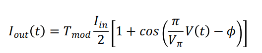 當我們設計強(qiáng)度調製器的時候,盡量需要兩條(tiáo)相等的光路(lù),這樣(yàng)他們的相位差近乎零。然而,由(yóu)於材料的(de)均勻性,製造(zào)工藝等原因(yīn),兩條光路(lù)總會略有不同,所以相位f用來(lái)標注這個不同。