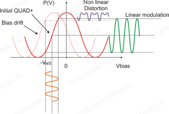 調製(zhì)器傳輸曲(qǔ)線的漂移以致(zhì)工作點發生變化,如果偏置電壓不被(bèi)重新調節,輸(shū)出光調製函數發生劇烈變(biàn)化,不僅僅(jǐn)是振幅,頻率也發生變(biàn)化。