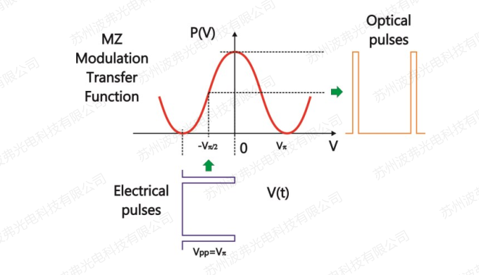峰間(jiān)電壓Vp的(de)電子脈衝(chōng)信(xìn)號施(shī)加到調製器上(shàng),產生高消光比的光脈衝信號