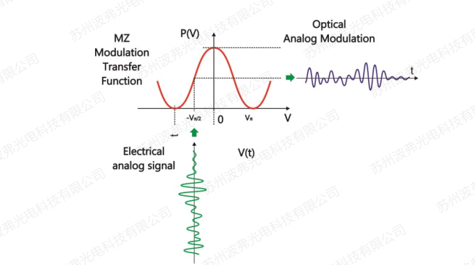 模(mó)擬電子信號 < Vp峰間電壓作用(yòng)於調製器上,重現(xiàn)輸出光信(xìn)號(hào)