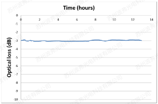 Figure 3 :使用退火質子交換工藝的NIR-MX800-LN調製(zhì)器插入損(sǔn)耗(hào)隨時間的穩(wěn)定性變化