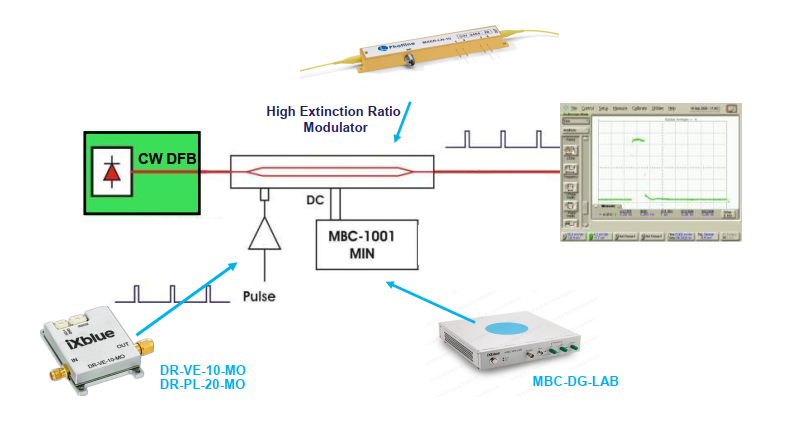 直流偏壓(yā)點的漂移可以使用iXblue的MBC(調製器自動偏壓控製器)解決方案進行主動監測和控製:台式儀器MBC-DG-LAB或MBC-DG-board鎖定用於脈(mò)衝(chōng)應用的Mach-Zehnder調製器的工作點。