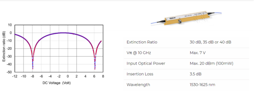 1550nm波段,10GHz/20GHz高消光比強度調製器(ER> 30,35,40dB) |