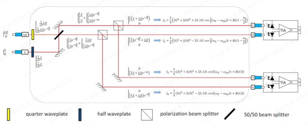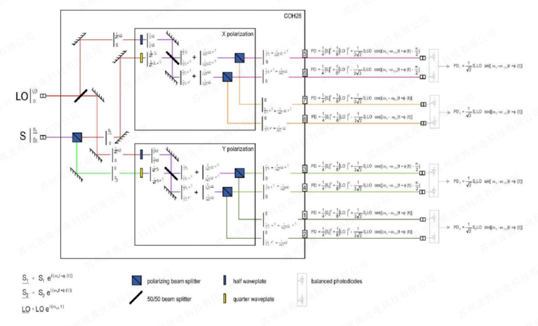 COH28和COH28-X基於兩個單偏振90°光混頻器,能夠從具有任何偏振的信號中提取相位、幅度和偏振。