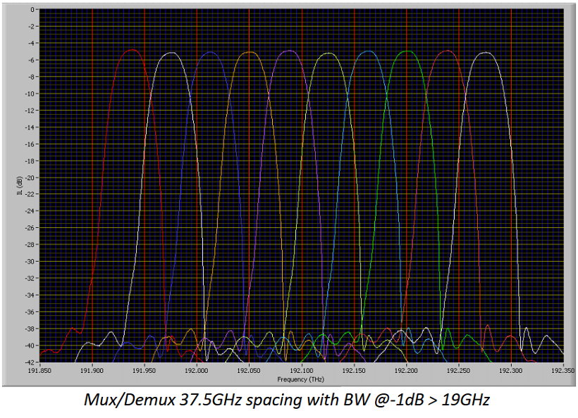 KYLIA開發了(le)台式可調MUX/DEMUX。 通過調整間距和光頻,用戶可以使用完整的網格模(mó)塊化。