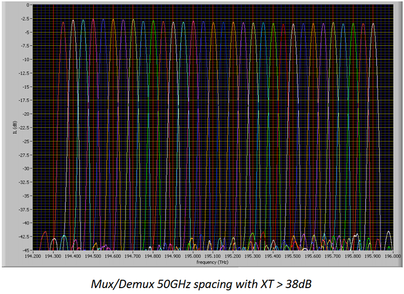 由於我們(men)技術的多功能性,我們能夠提供(gòng)最完整的DWDM Mux/Demux範圍(wéi),間隔從6.25GHz到400GHz。