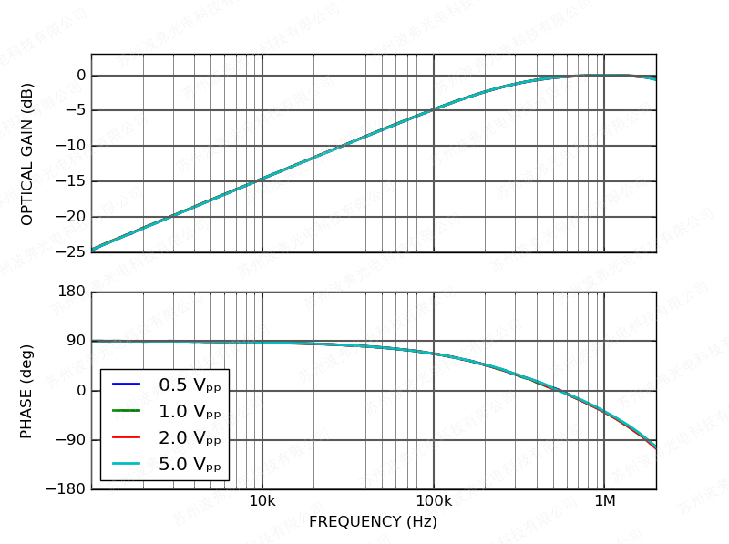 交流調製輸入可用(yòng)於調製(zhì)1 MHz以上的激光器,調製(zhì)增益為20 mA/V: